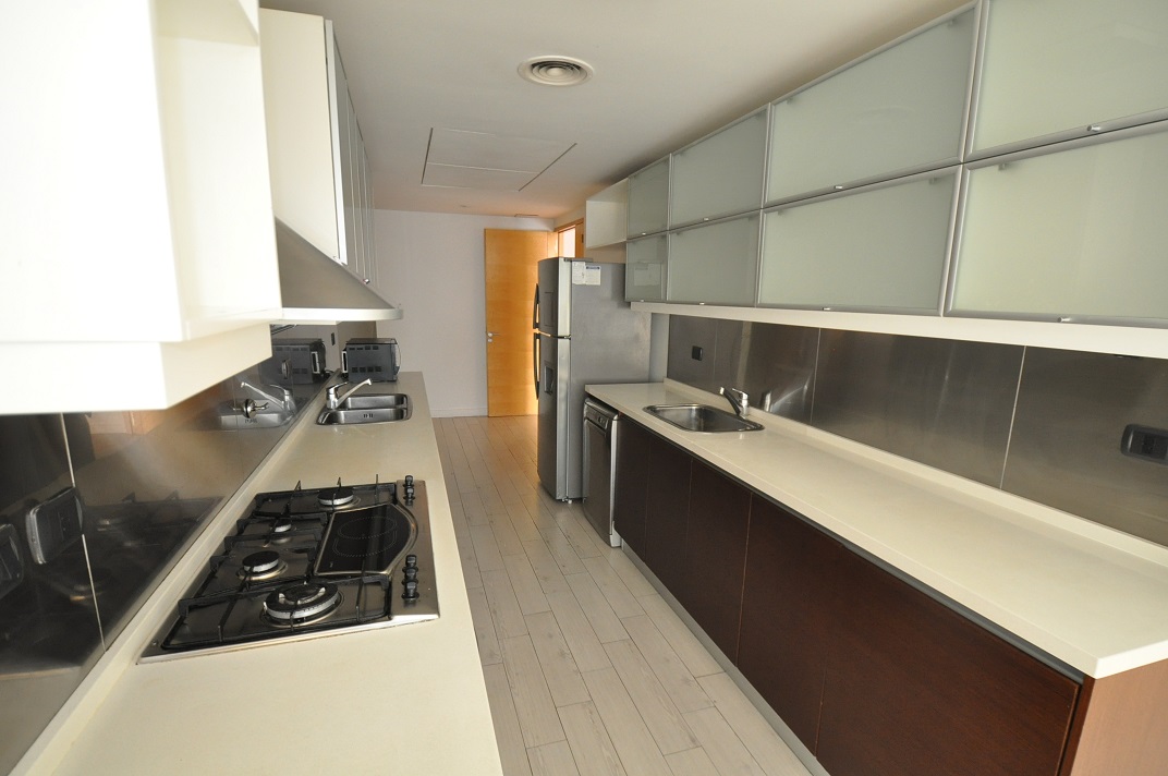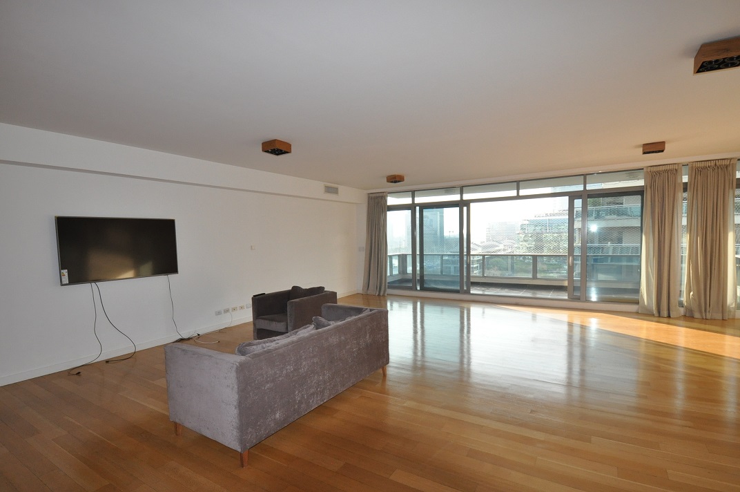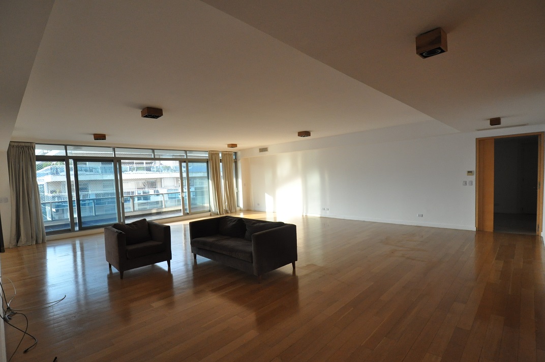 Madero Center, todo externo, vista excelente al dique y Ciudad. Amplia recepción a balcón apaisado. Palier privado, living comedor de aprox 80 m2, con salida a gran balcón aterrazado, toilette, master suite con vestidor, suite junior con muy buena vista externa. Cocina y comedor diario, externos también. Lavadero y dependencia de servicio. Ningún ambiente tiene vista al interior del complejo, todo es externo. Calefacción y AC individual del piso, pisos de parquet de roble. Tiene 2 cocheras y baulera.